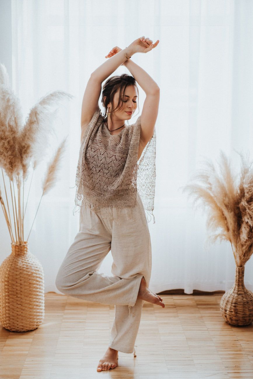 Podnieś swój strój odrobiną zrównoważonego wyrafinowania dzięki temu ręcznie szydełkowanemu, kremowemu bolerkowi z włókna pokrzywy. Ten wyjątkowy element , wykonany w 100% z naturalnej pokrzywy, oferuje zaskakującą miękkość i lekką zasłonę. Pokrzywa to szybko rosnący i ekologiczny materiał, dzięki czemu to bolerko jest idealnym wyborem dla świadomych mody i ceniących środowisko.