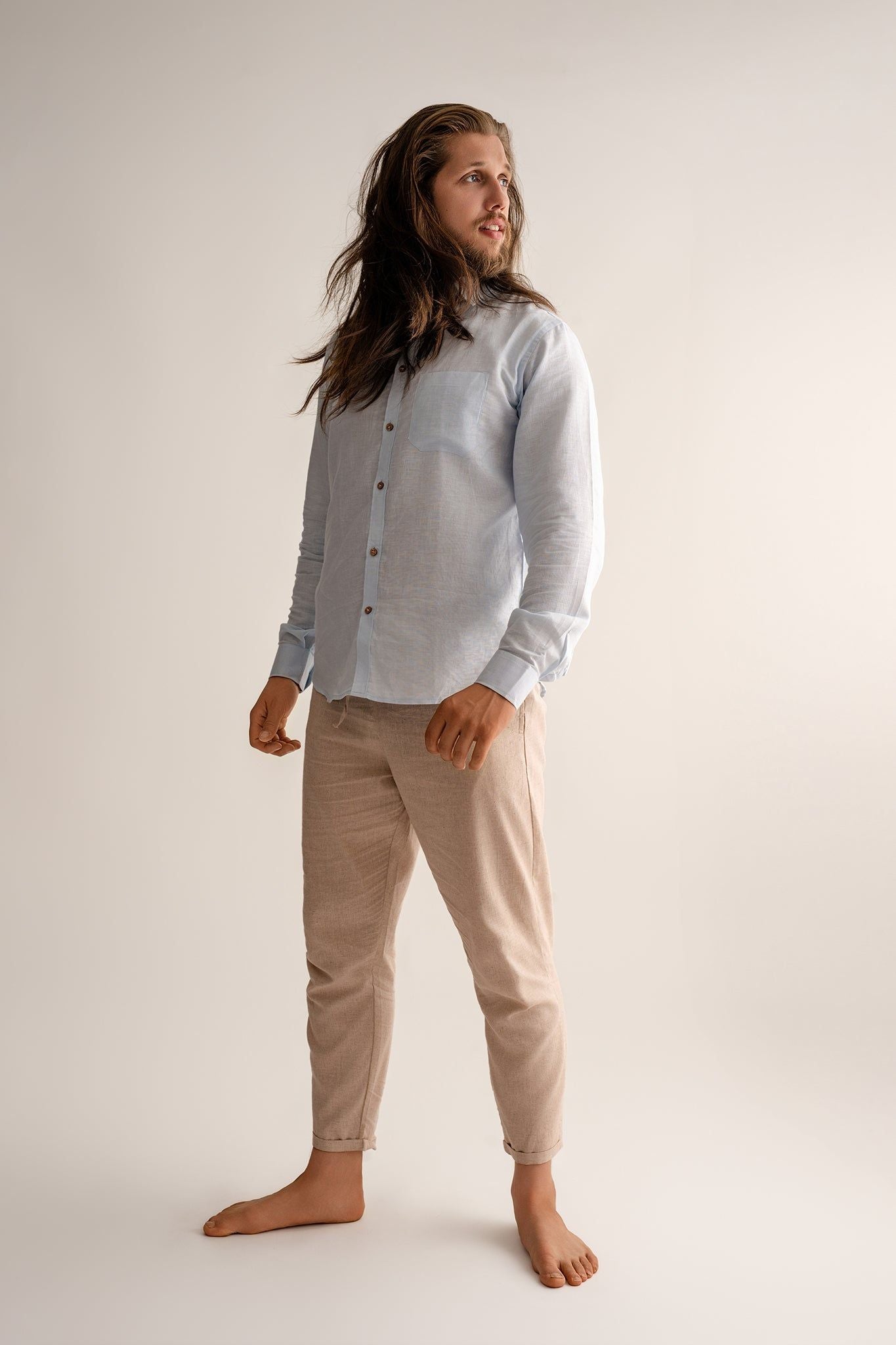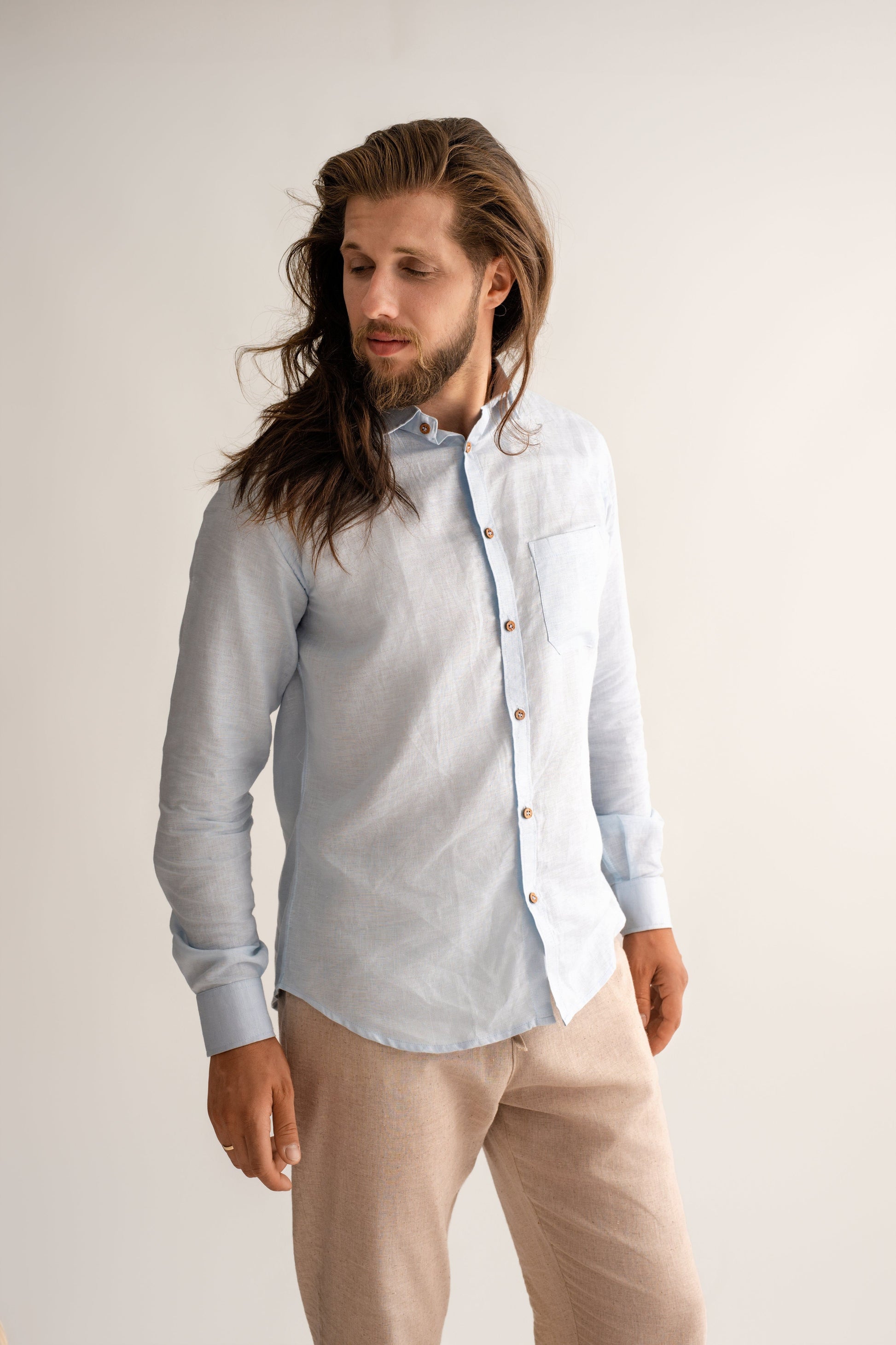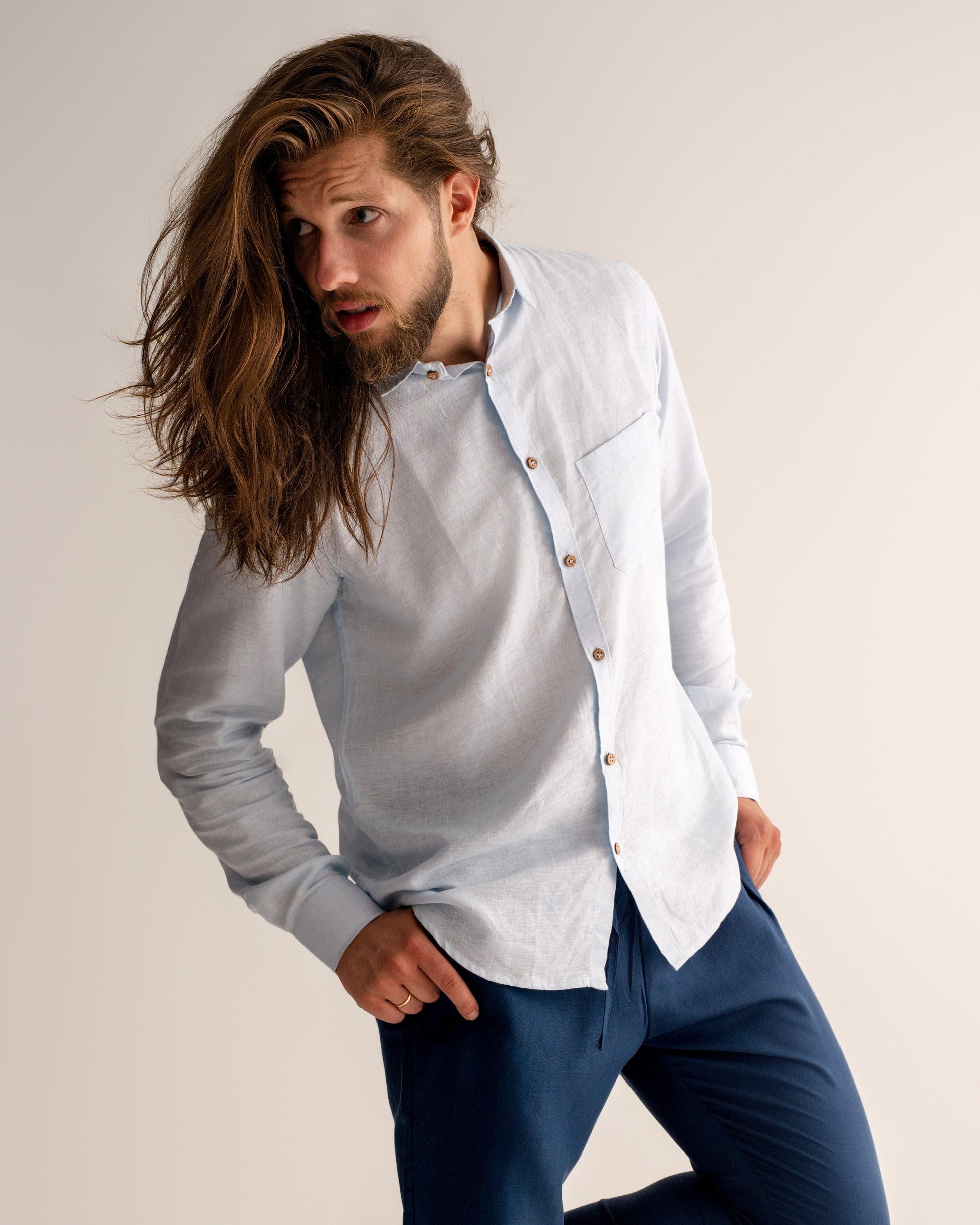Lekka, elegancka i zrównoważona. Ta koszula z konopi o dopasowanym kroju łączy nowoczesny krój z ekologicznym rzemiosłem, dzięki czemu jest uniwersalnym wyborem zarówno do biura, jak i na co dzień.