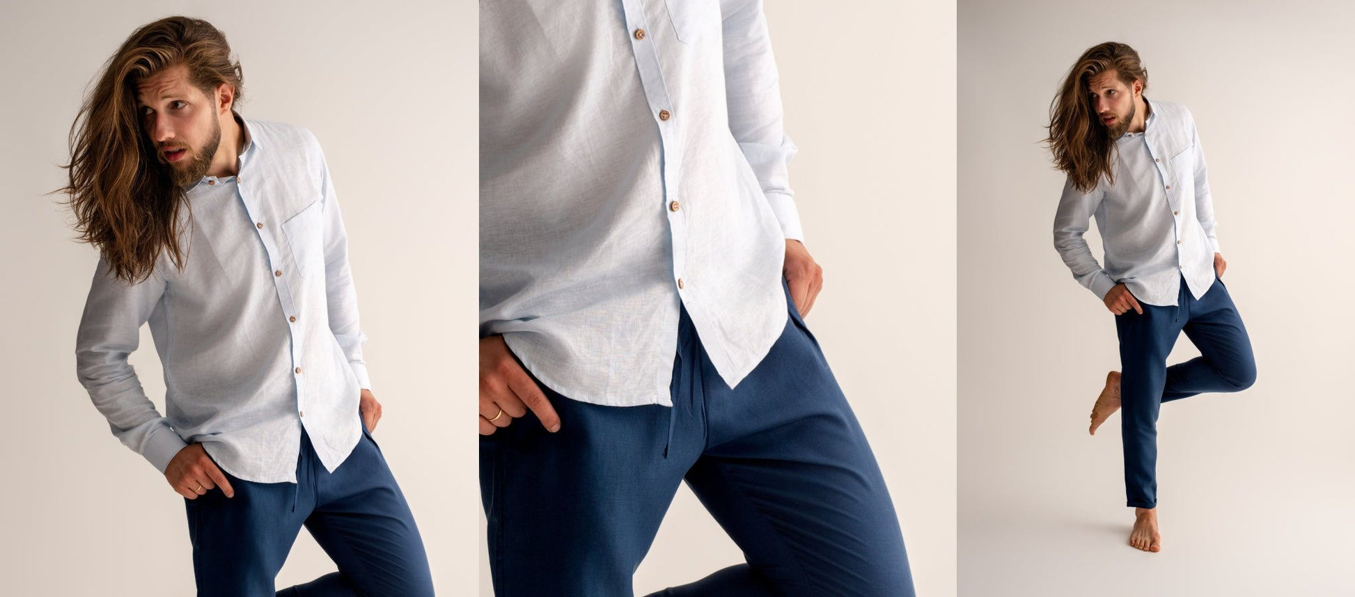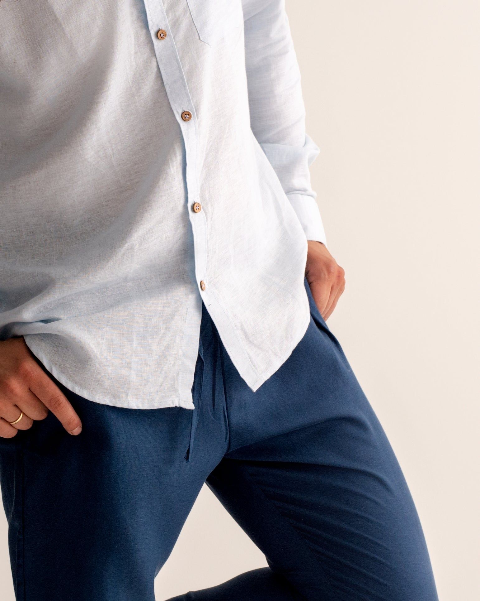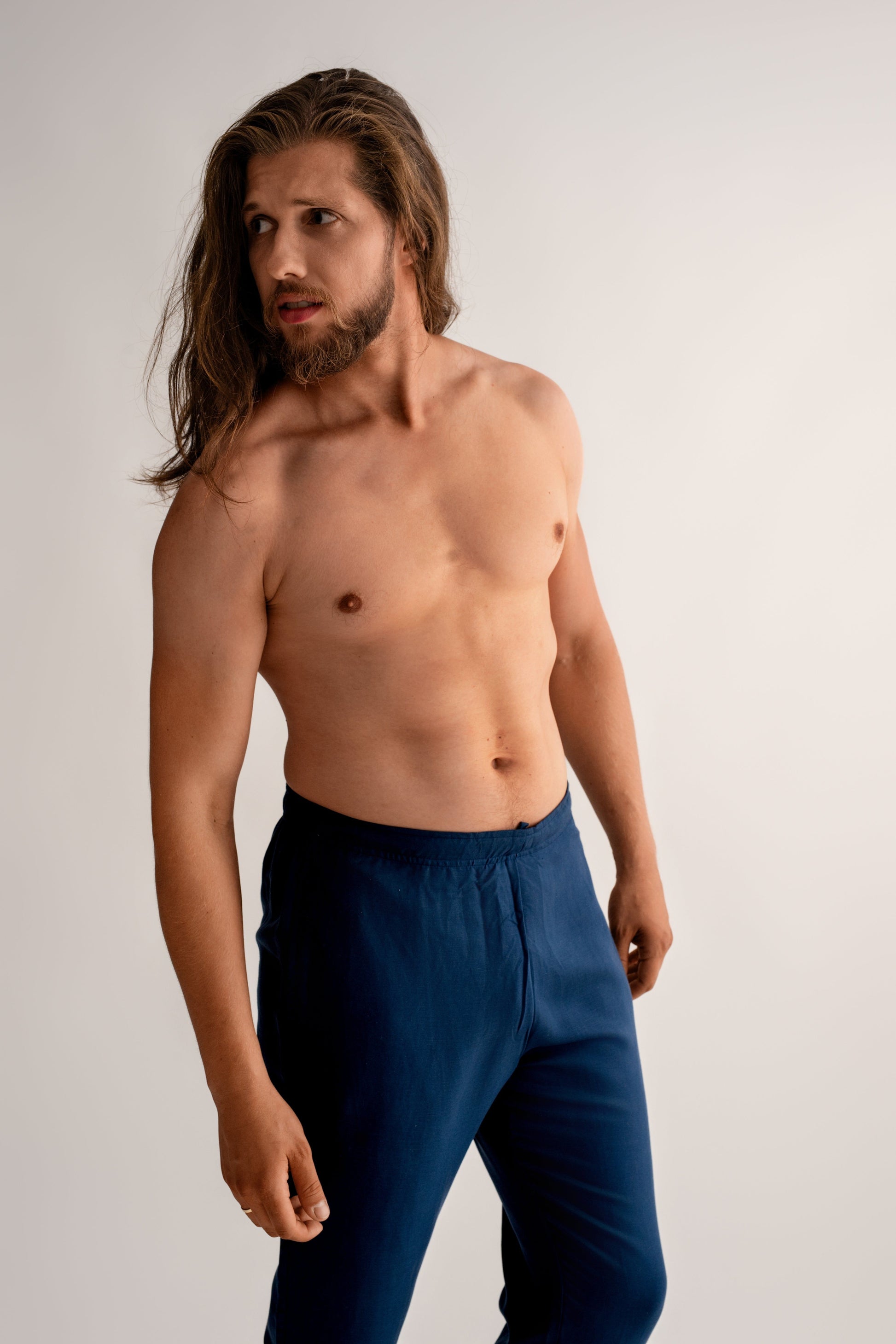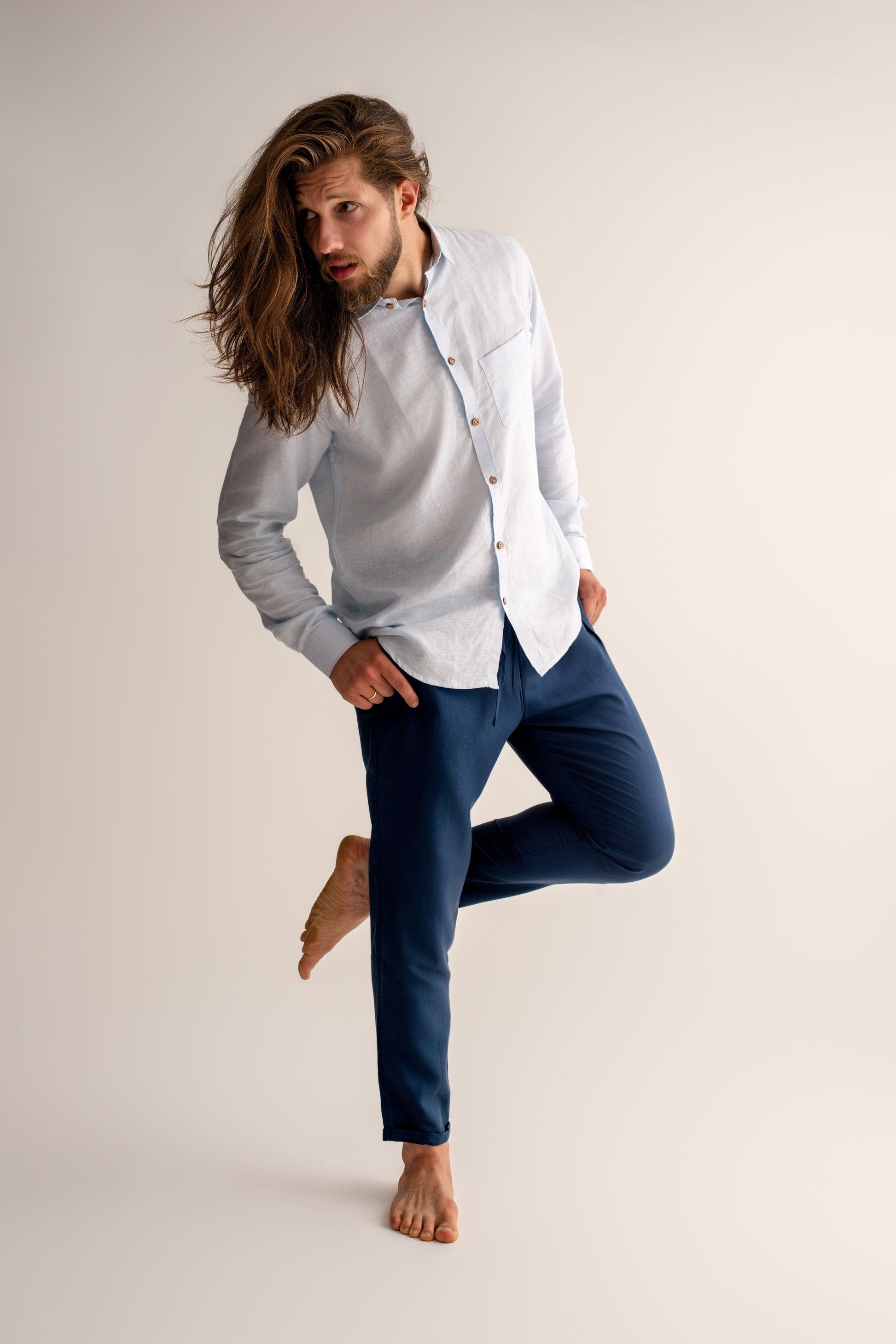 Męskie spodnie w kolorze królewskiego błękitu z konopii