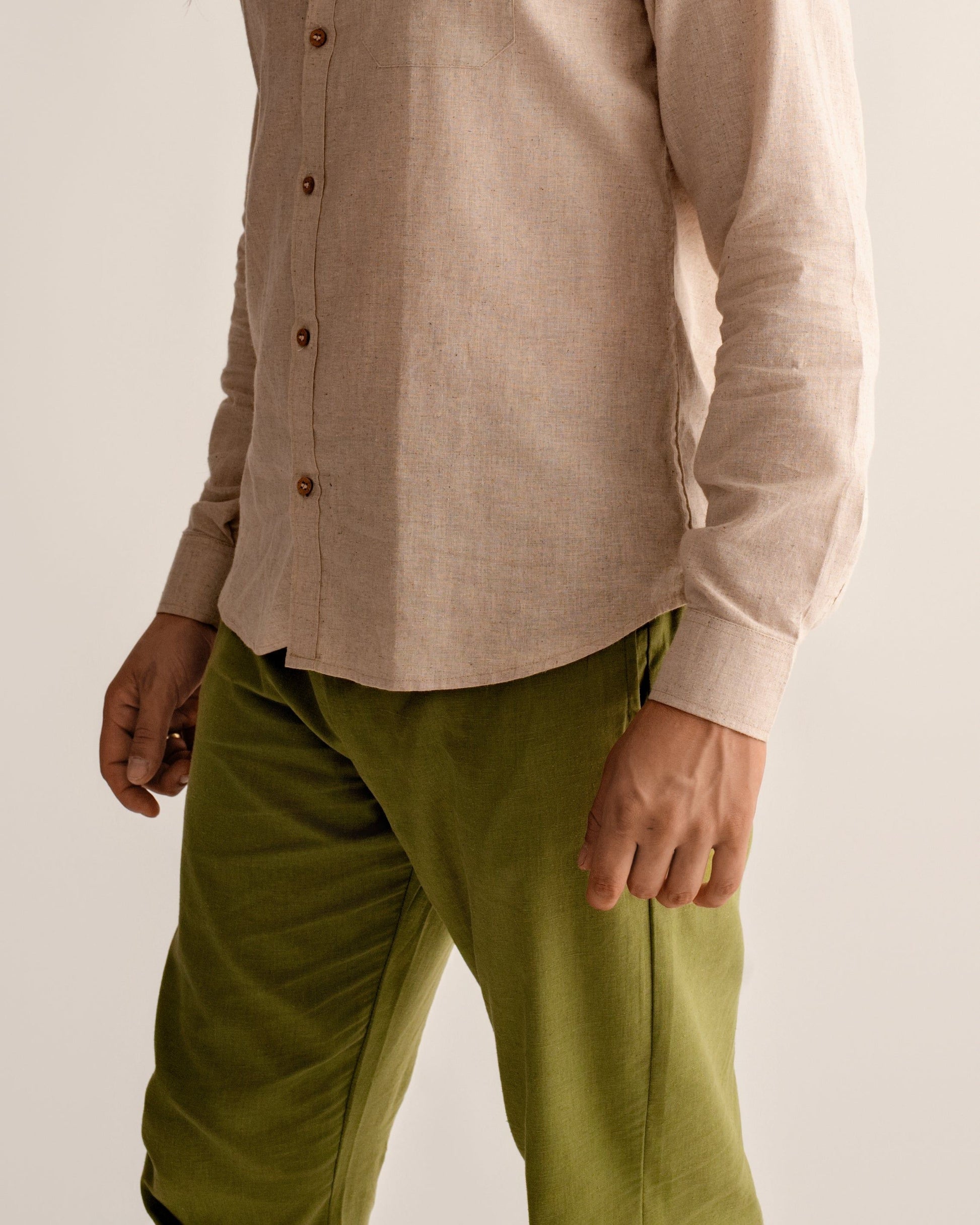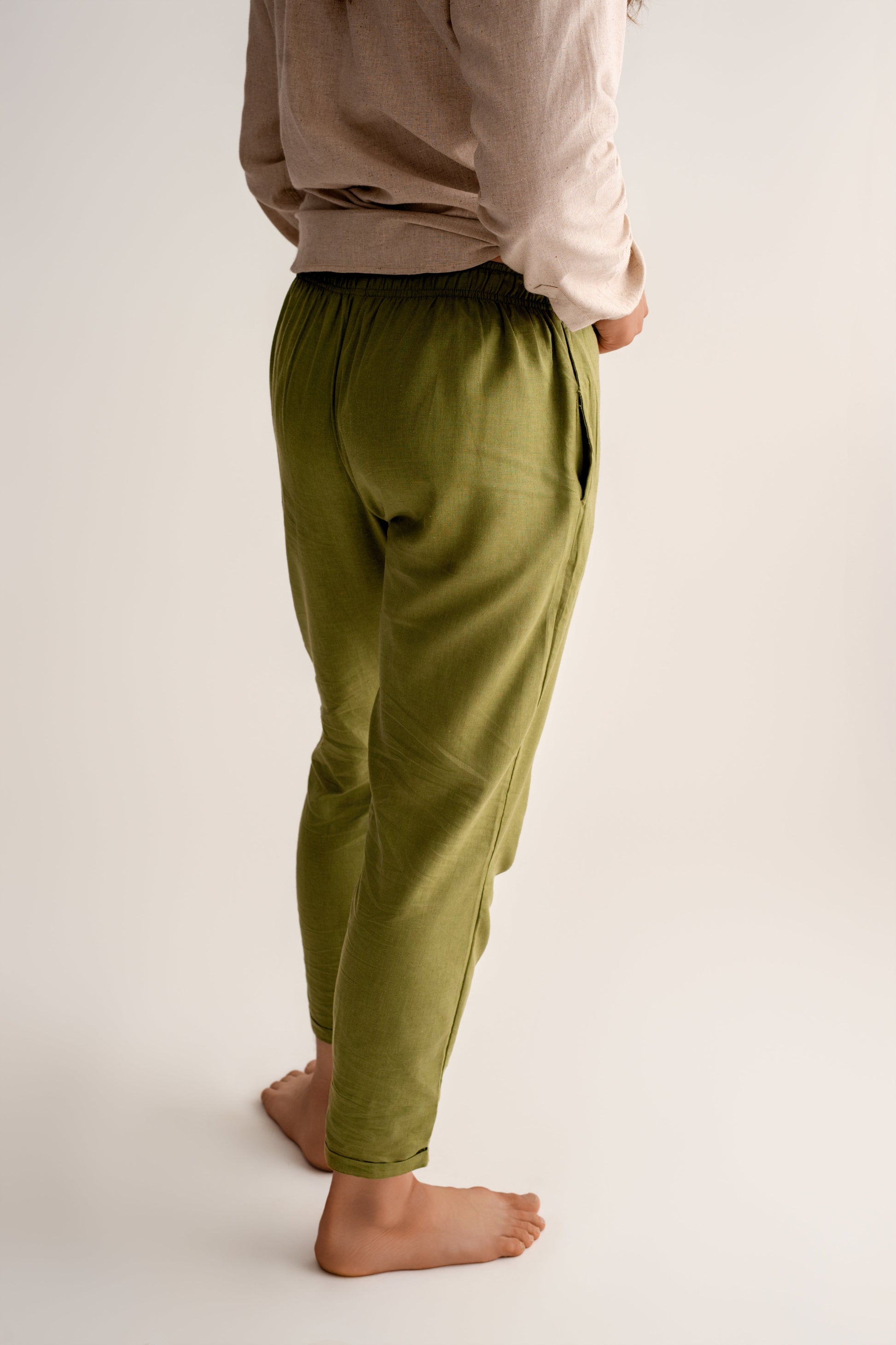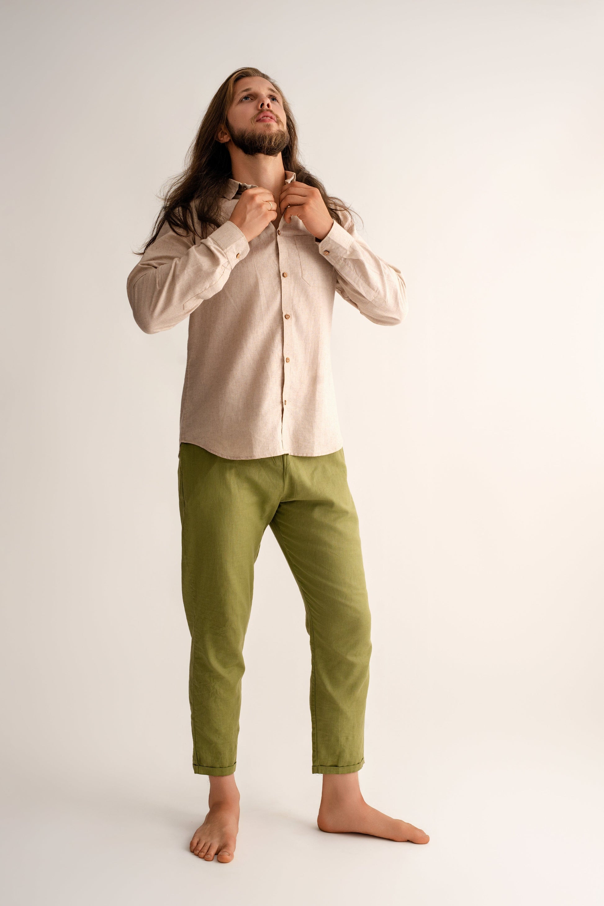 Męskie spodnie w kolorze Oliwkowym z Konopi
