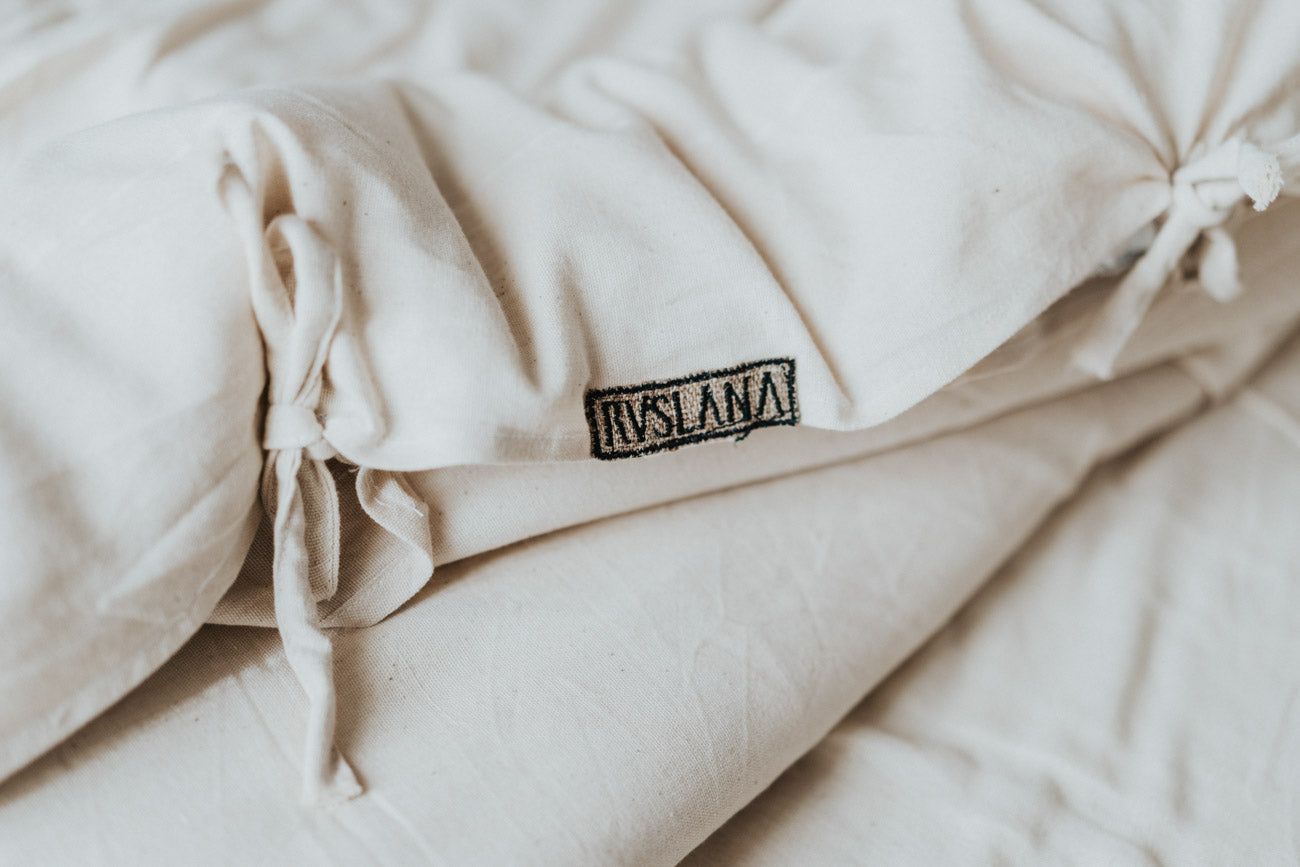 Komplet poszwy na kołdrę i poduszkę wykonany jest z mieszanki pokrzywy i naturalnej bawełny w proporcjach 50/50.