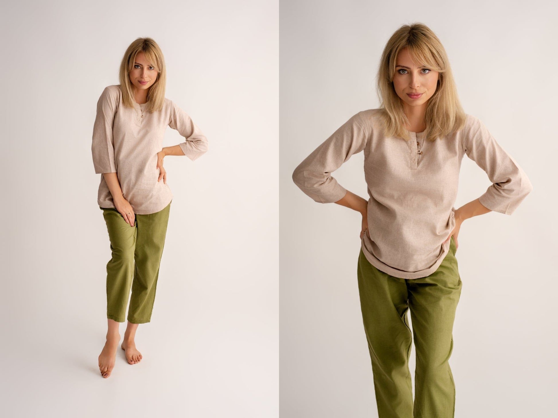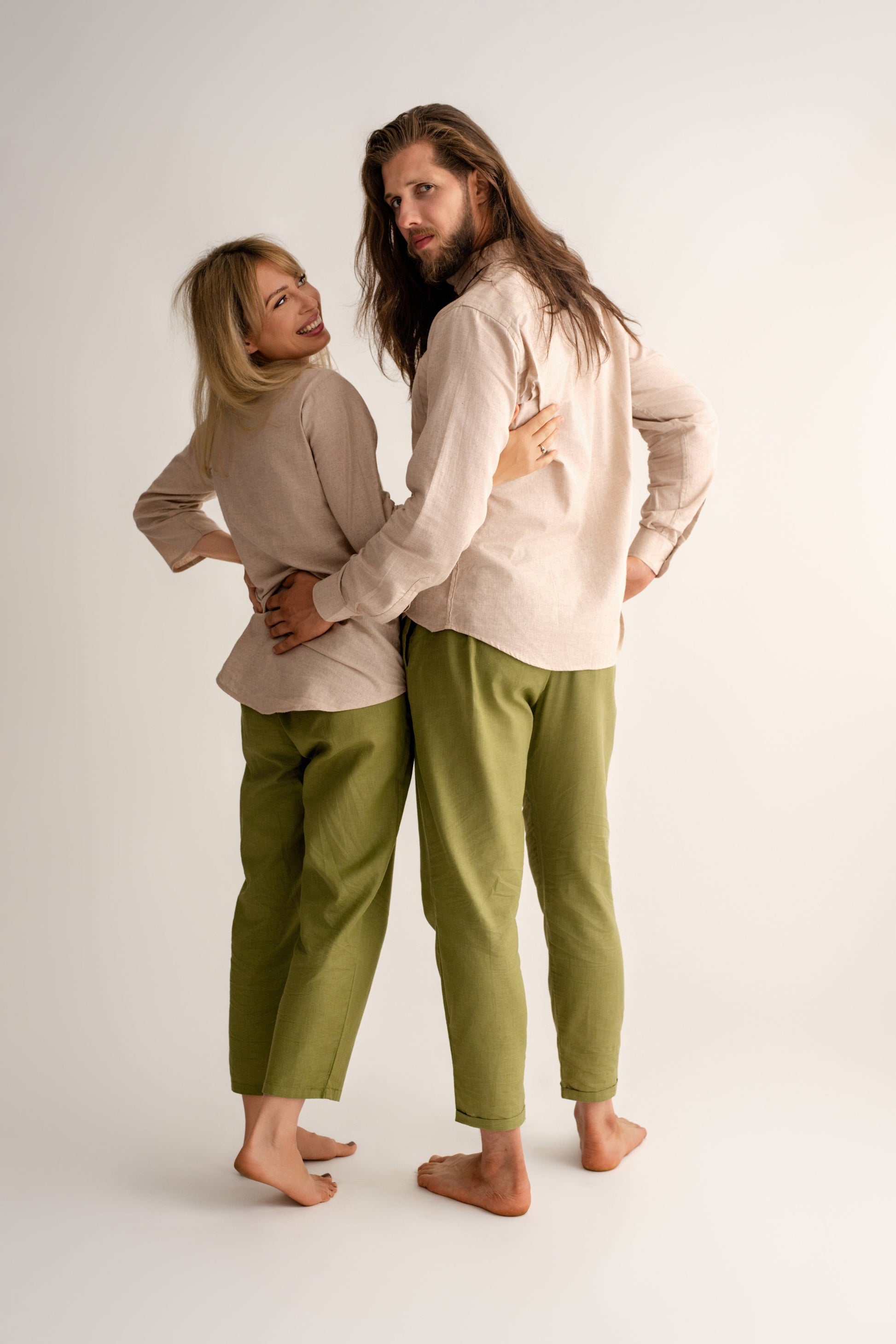 Damskie spodnie z konopi w kolorze Pistacjowej Zieleni